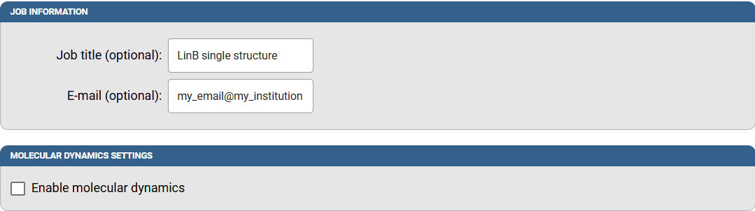 Caver Web allows you to run molecular dynamics with your system before the calculation of tunnels, but we will illustrate this option in a different example case, so do not check that box.